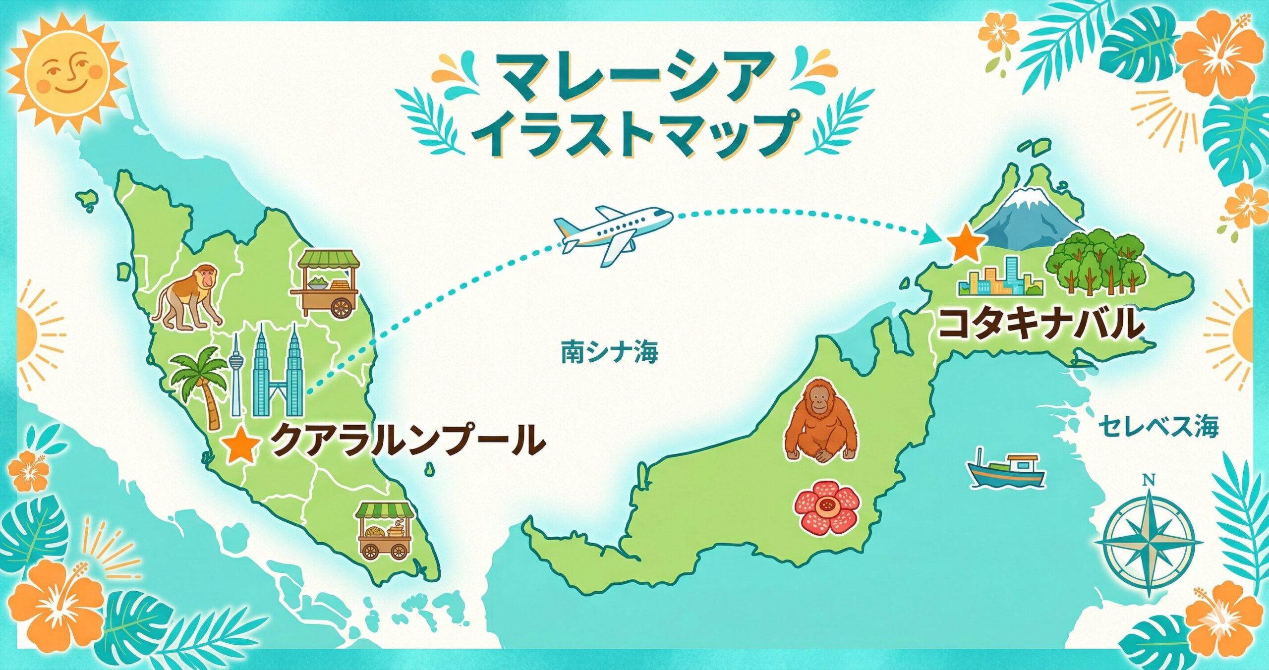 📌 日本からコタキナバルへ直行便はなく、KLやクアラルンプール経由が一般的です。
